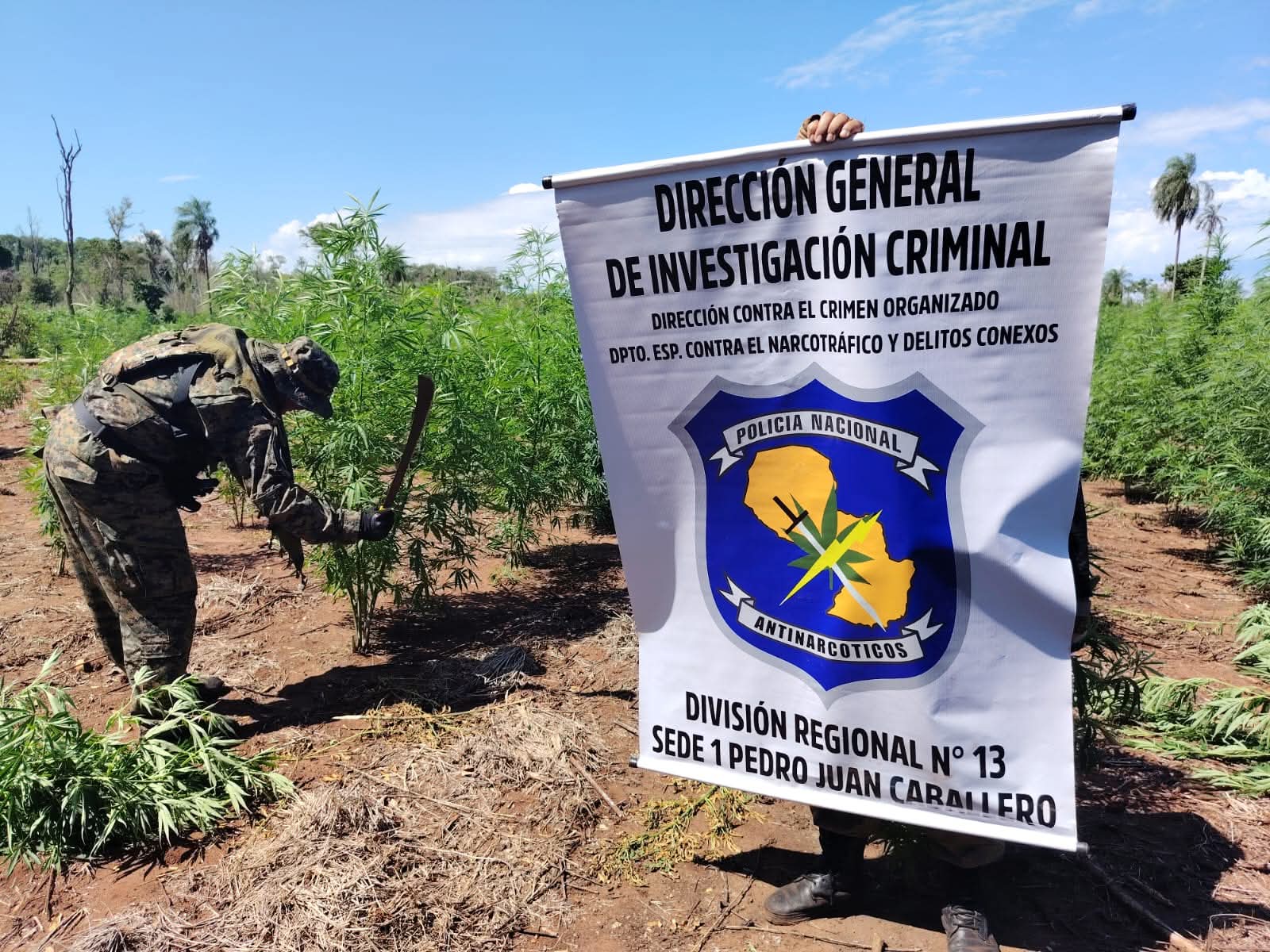 Una comitiva fiscal-policial desmanteló un centro de producción de estupefacientes en la colonia María Auxiliadora de Cerro Corá, tras un operativo que se extendió por nueve horas. Los intervinientes incineraron dos campamentos precarios y anularon el crecimiento de una importante superficie de plantaciones de marihuana, además de incautar maquinarias utilizadas para la siembra en la zona.