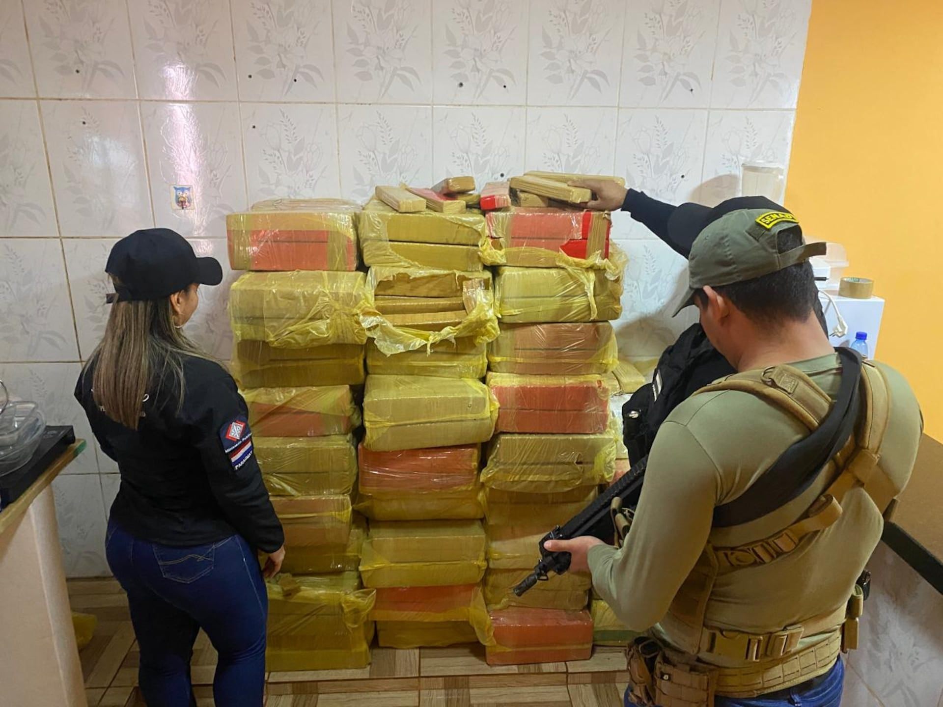 El estupefaciente sacado de circulación durante el procedimiento totalizó 703 kilos distribuidos en 34 bultos, listos para ser trasladados fuera del país, específicamente Brasil.