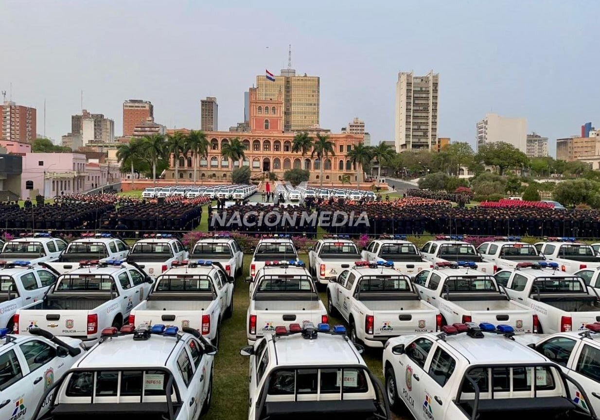 Se trata de un lote de 250 nuevas patrulleras, adquiridas con apoyo de Itaipú Binacional, sumándose a su vez otras 100 motocicletas y 1.500 chalecos tácticos para las fuerzas de seguridad.