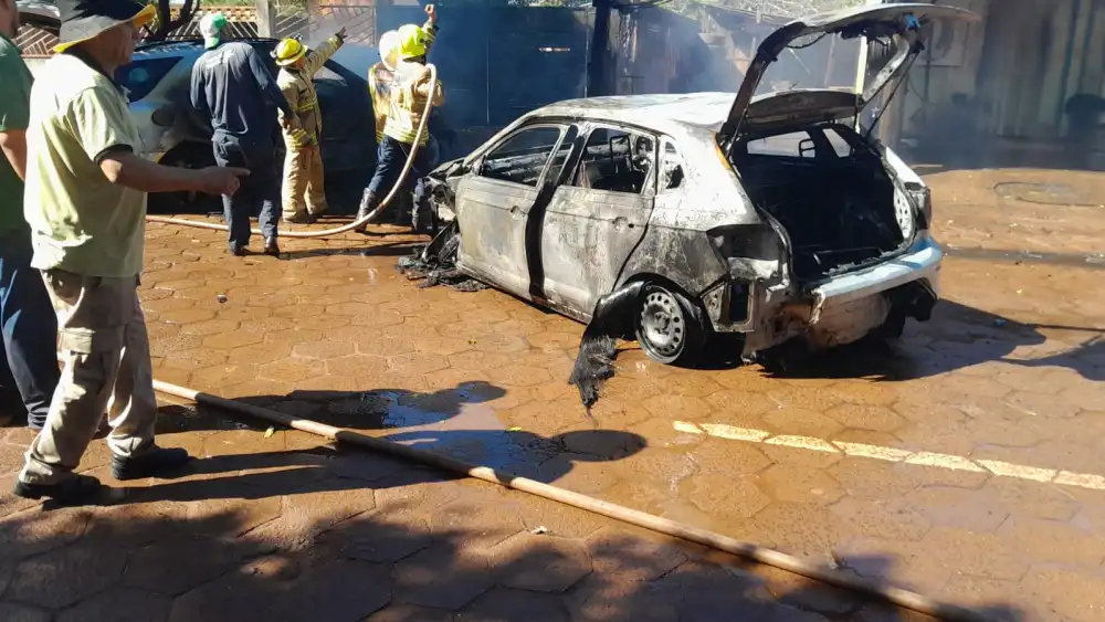 Según el informe policial, uno de los vehículos calcinados es de la marca Volkswagen, tipo Polo Track, propiedad de una las víctimas. También registraron una camioneta incendiada, de la marca Mercedes, color gris, con placa brasileña N JDF2JO7.