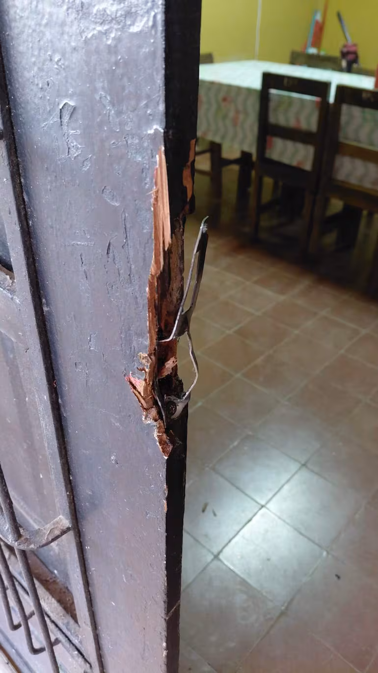 El robo fue descubierto en la mañana del miércoles, cuando la bibliotecaria Mabel Rodríguez alertó a la directora Evelia Benítez Fernández sobre la puerta trasera violentada. “Ayer no hubo clases por licencia sindical y grande fue nuestra sorpresa al encontrar la puerta forzada y los sobres con el dinero para el festejo del Día del Niño desaparecidos”, relató Benítez.