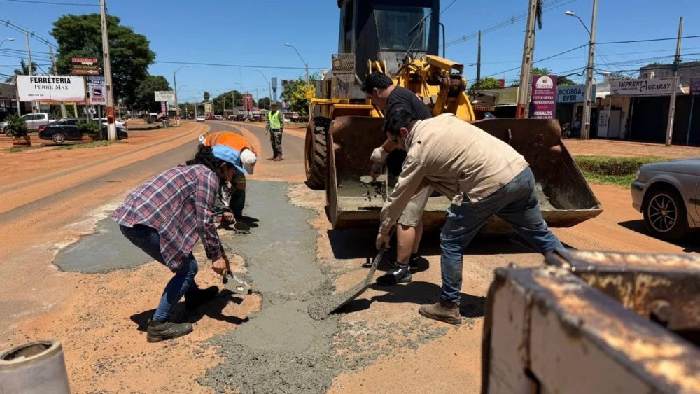 Cansados de esperar respuestas, vecinos se unieron para reparar los baches que afectan la principal vía de Santa Rosa del Aguaray, Departamento de San Pedro, desde hace más de tres años.