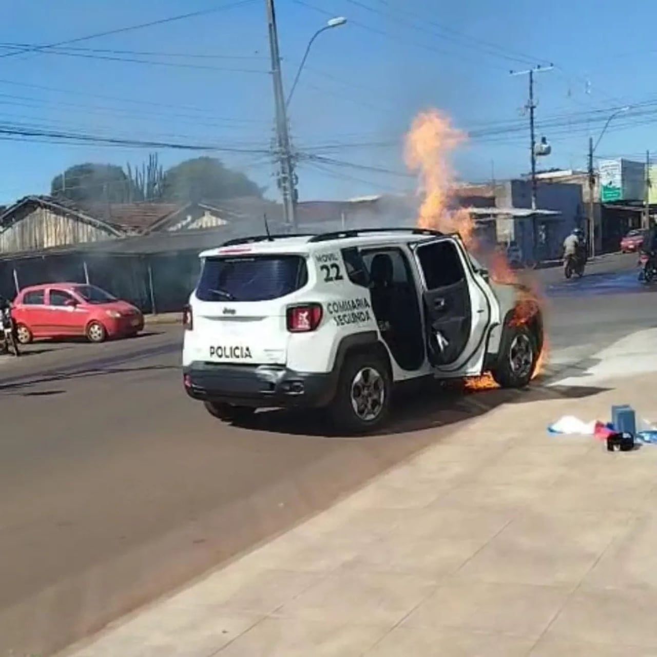 Este jueves, un patrullera de la Policía Nacional ardió en llamas en pleno centro de la ciudad de Pedro Juan Caballero, departamento de Amambay. El incendio fue controlado por los bomberos voluntarios, pero el vehículo quedó inservible. Hasta el momento se desconoce cómo se originó el fuego.