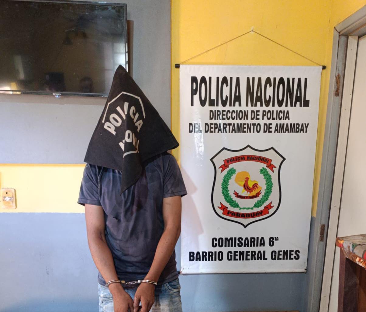 Un joven fue aprehendido por agentes de la Comisaría Sexta tras ser denunciado por su propia madre por un supuesto hecho de robo agravado en el barrio General Genes de Pedro Juan Caballero. El sospechoso habría despojado a la mujer de una garrafa de gas, siendo capturado tras una breve persecución a pie por la zona.