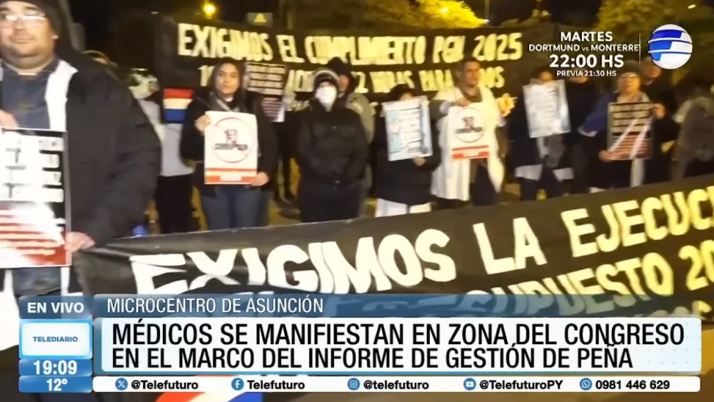 Personales de blanco, integrantes del Sindicato Nacional de Médicos, fueron bloqueados por la Policía Nacional a unos 100 metros del Congreso en Asunción, impidiéndoles llegar al punto donde tradicionalmente se manifiestan durante la presentación del informe anual del presidente Santiago Peña. Los profesionales de la Salud denuncian una “violación a sus derechos y represión”, afirmando que este es el primer Gobierno que les impide acercarse a la esquina del Palacio Legislativo.