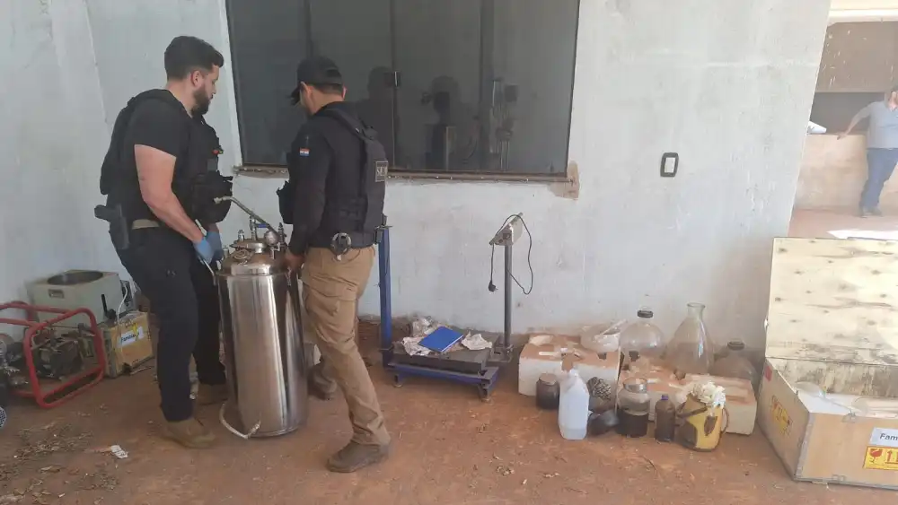 Durante un allanamiento que se inició a las 11:30 del último lunes, la Secretaría Nacional Antidrogas (Senad) desmanteló un laboratorio para procesar marihuana en forma líquida, utilizada de diferentes formas de consumo.
